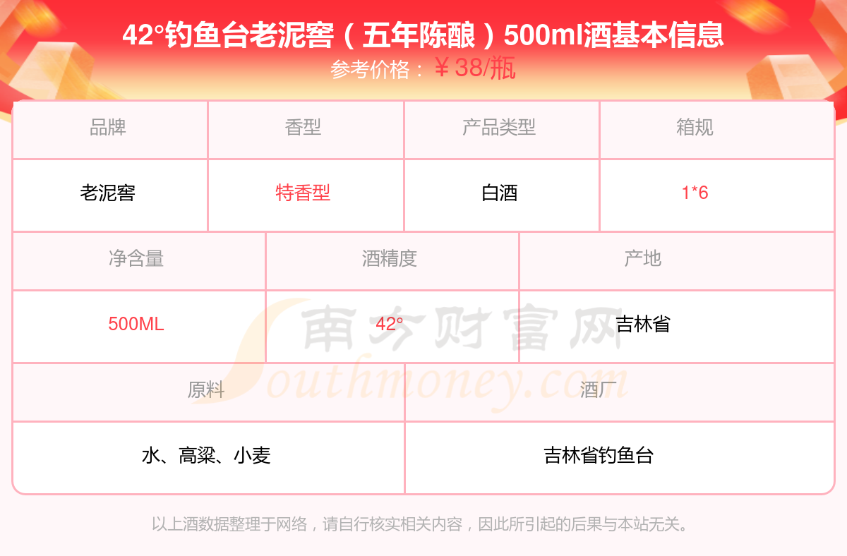 42°釣魚臺老泥窖(五年陳釀)500ml基本信息