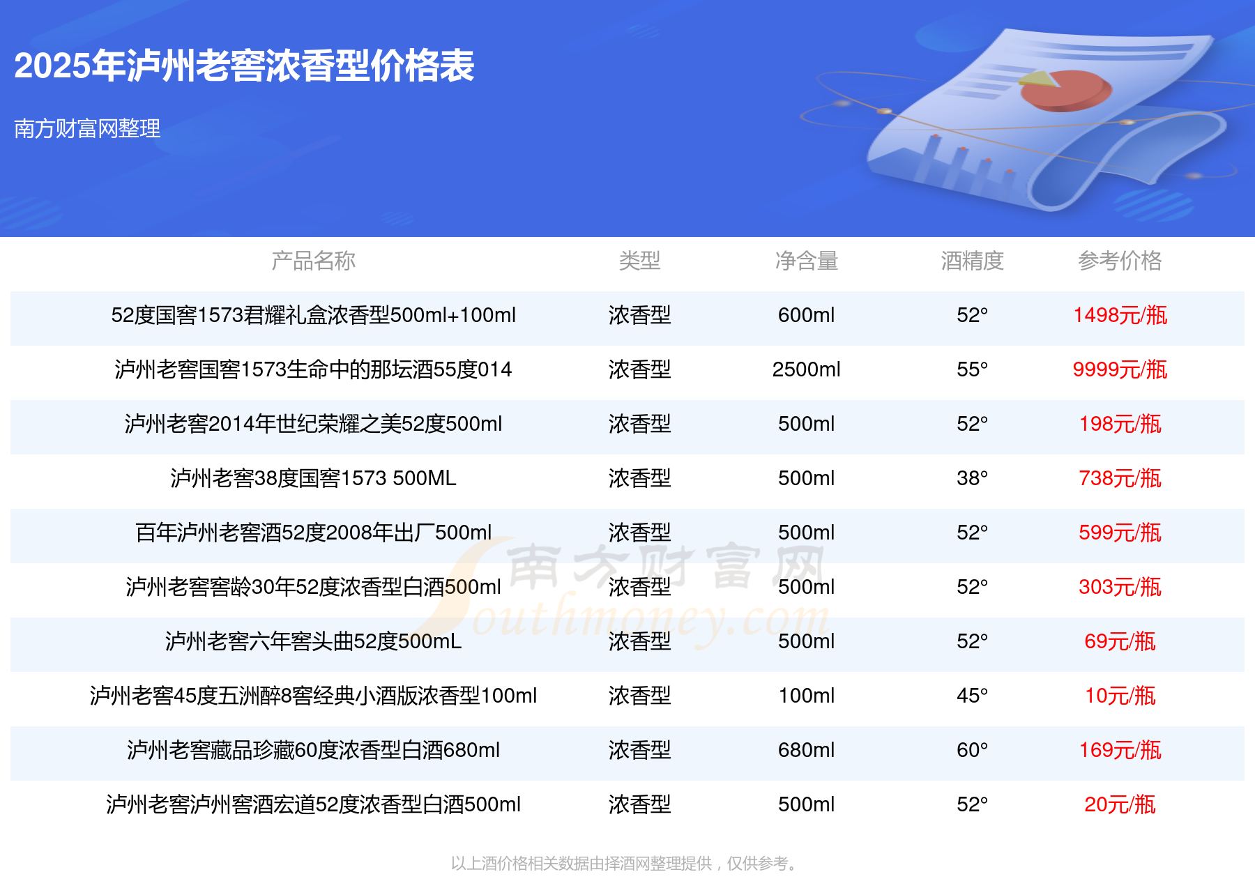 瀘州老窖國(guó)窖1573春釀鼠兆豐年E 55度參考價(jià)17999元/瓶、瀘州老窖國(guó)窖1573生命中的那壇酒55度014參考價(jià)9999元/瓶、瀘州老窖國(guó)窖1573春釀鼠兆豐年A 55度參考價(jià)5088元/瓶、瀘州老窖國(guó)窖1573生命中的那壇酒55度013濃香型白酒1000ml參考價(jià)4988元/瓶、瀘州老窖國(guó)窖1573生命中的那壇酒55度009 1000ml參考價(jià)4288元/瓶。