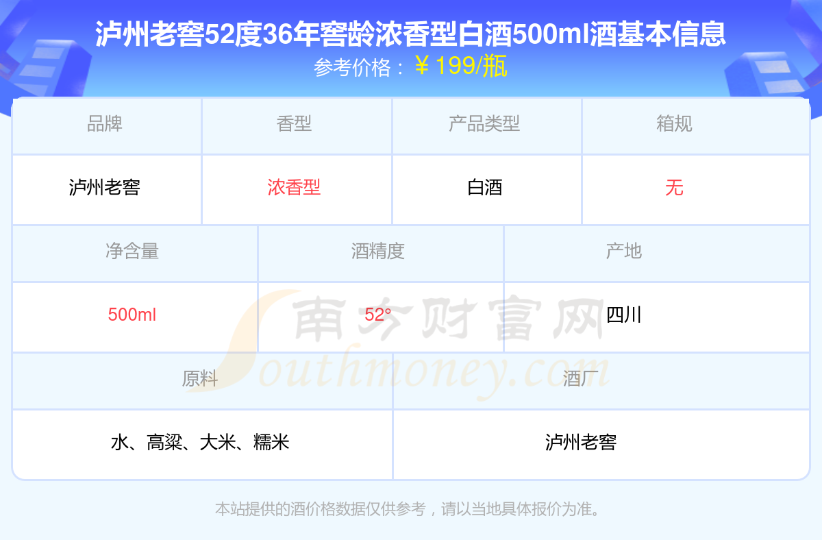 瀘州老窖52度36年窖齡濃香型白酒500ml基本信息
