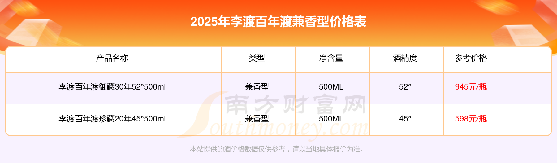 2025李渡百年渡兼香型酒最新價(jià)格: