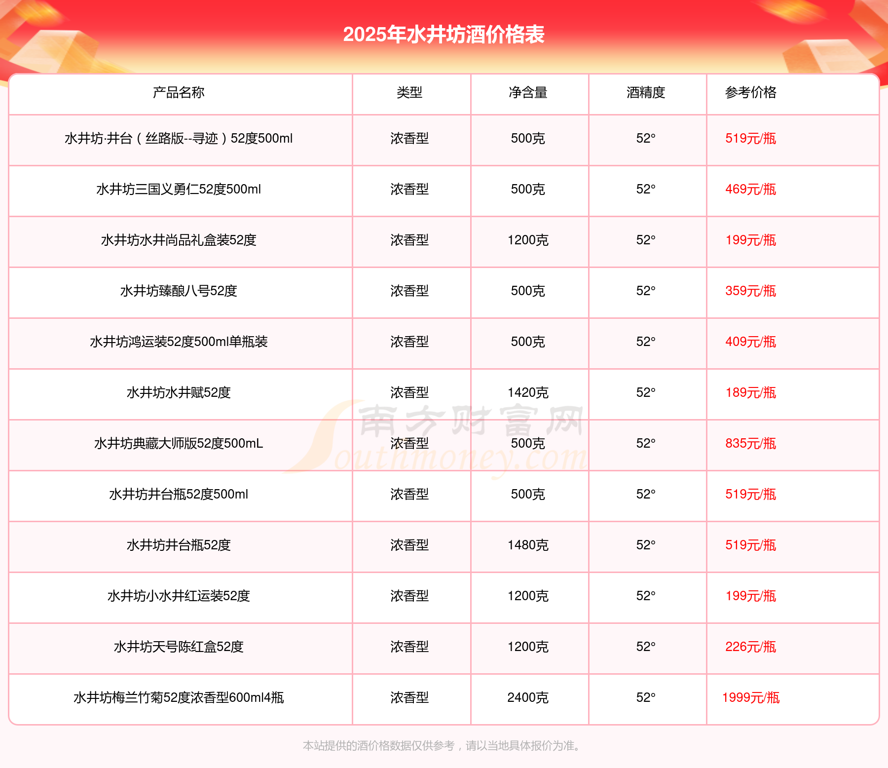 本站提供的酒價(jià)格數(shù)據(jù)僅供參考,請以當(dāng)?shù)鼐唧w報(bào)價(jià)為準(zhǔn)。