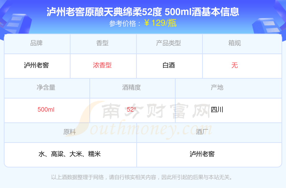 瀘州老窖原釀天典綿柔52度 500ml基本信息
