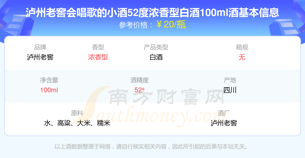 瀘州老窖會唱歌的小酒52度濃香型白酒100ml基本信息