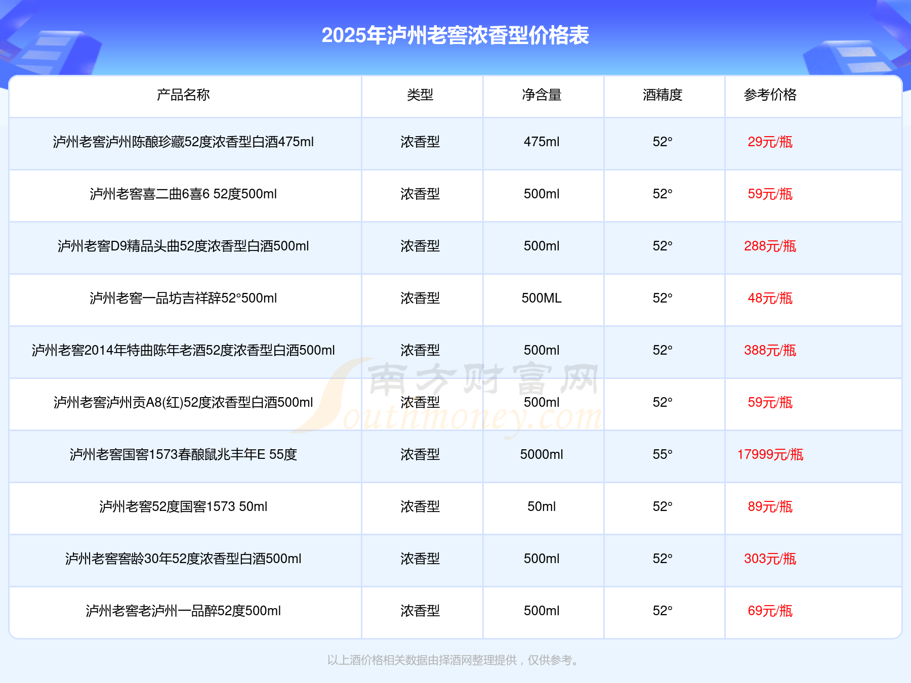 2025瀘州老窖濃香型酒最新價(jià)格: