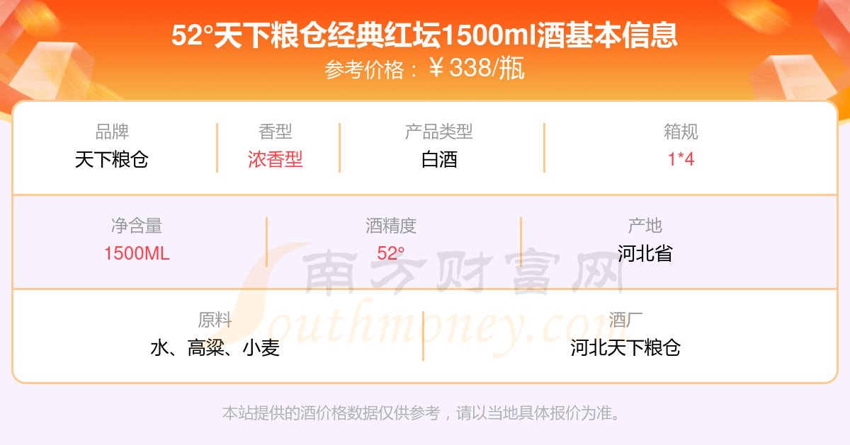52°天下糧倉(cāng)經(jīng)典紅壇1500ml基本信息