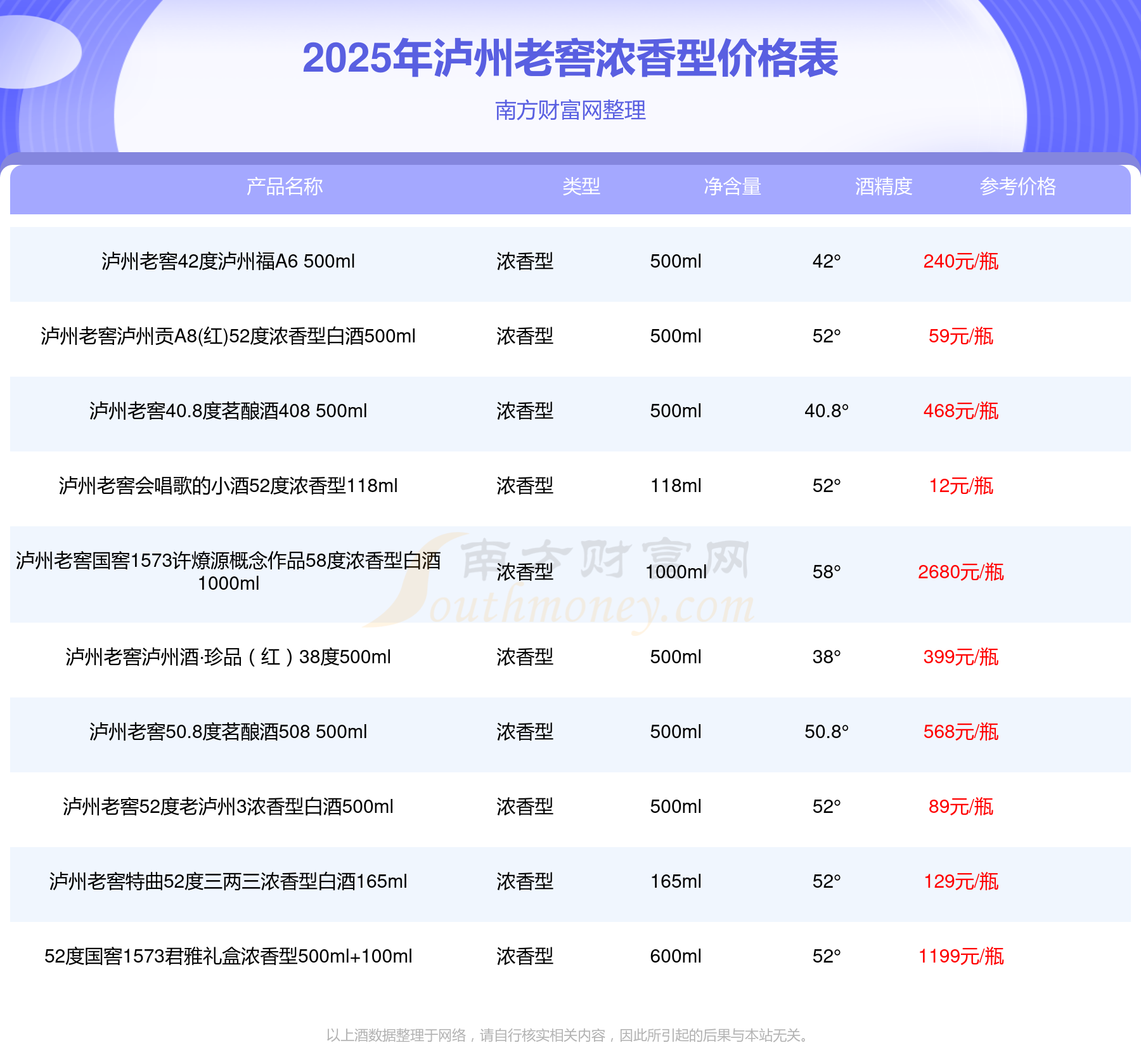 以上酒數(shù)據(jù)整理于網(wǎng)絡(luò),請(qǐng)自行核實(shí)相關(guān)內(nèi)容,因此所引起的后果與本站無關(guān)。