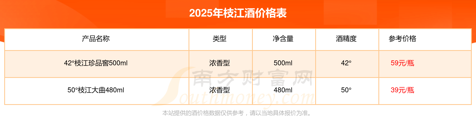 42°枝江珍品窖500ml參考價59元/瓶、50°枝江大曲480ml參考價39元/瓶。