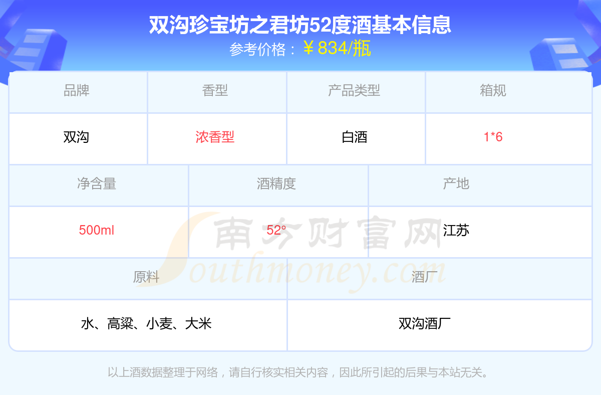 雙溝珍寶坊之君坊52度基本信息
