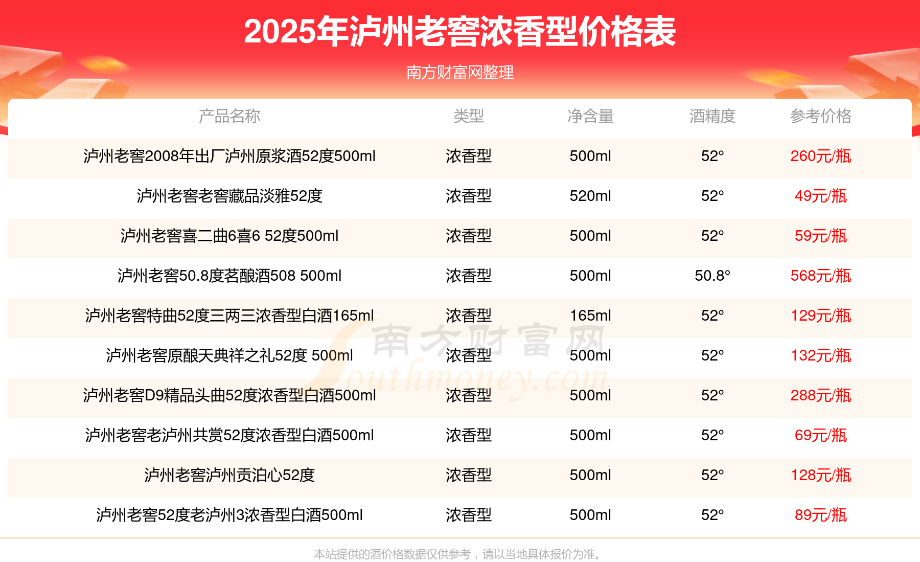 瀘州老窖濃香型酒最新價(jià)格2025: