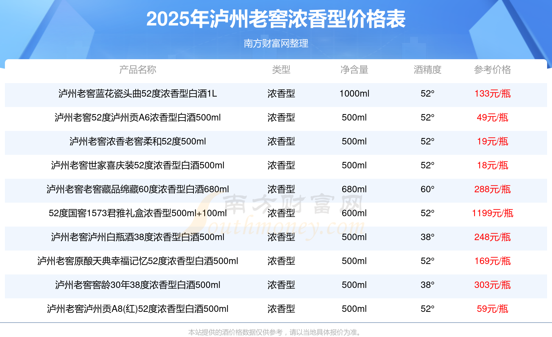 2025瀘州老窖濃香型酒最新價(jià)格: