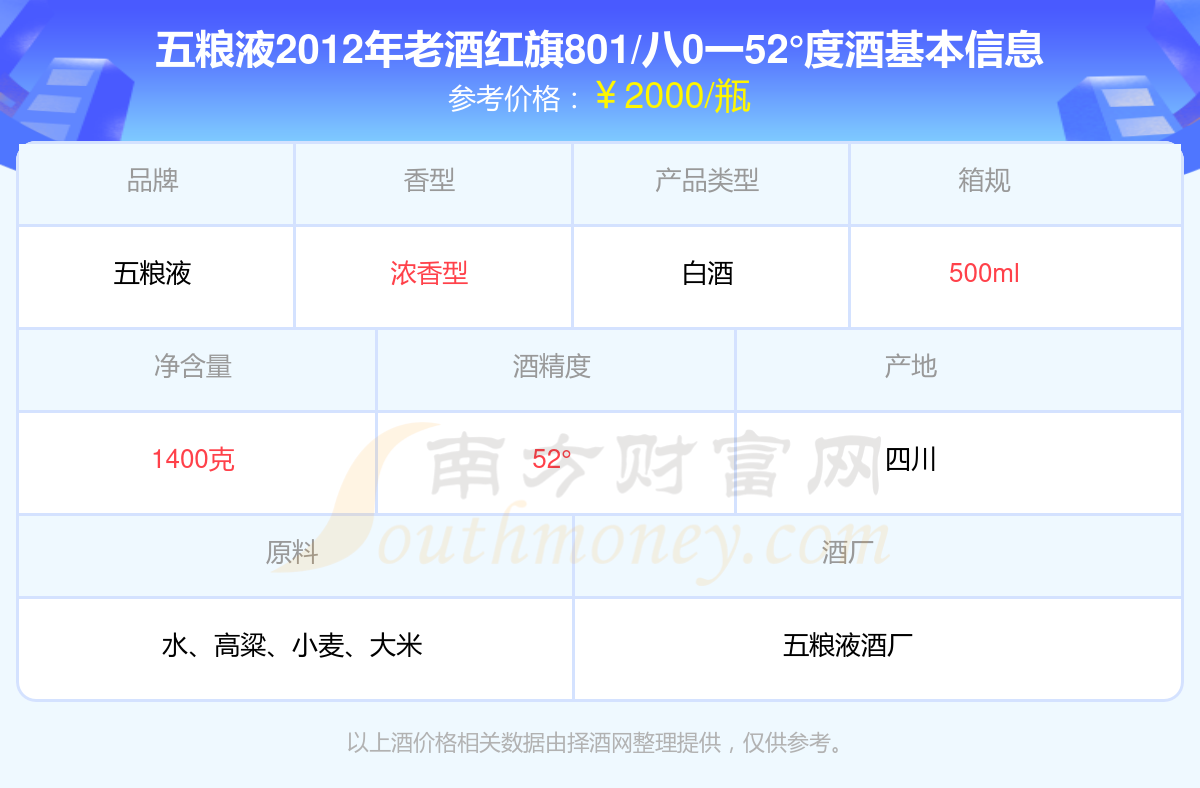 五糧液2012年老酒紅旗801/八0一52°度基本信息
