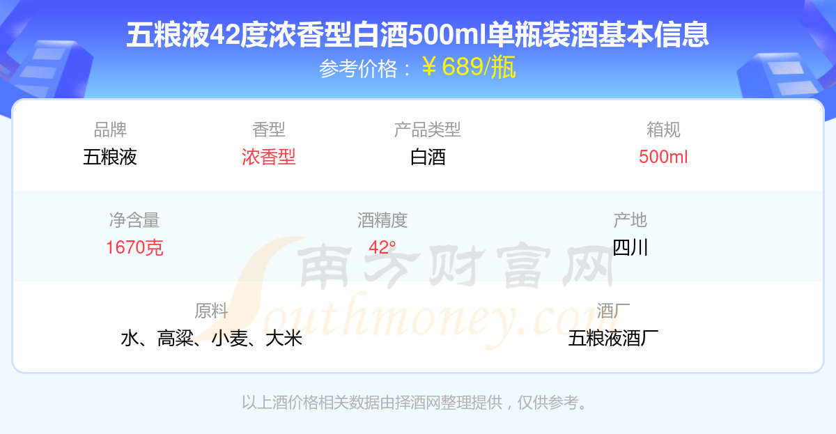 五糧液42度濃香型白酒500ml單瓶裝基本信息