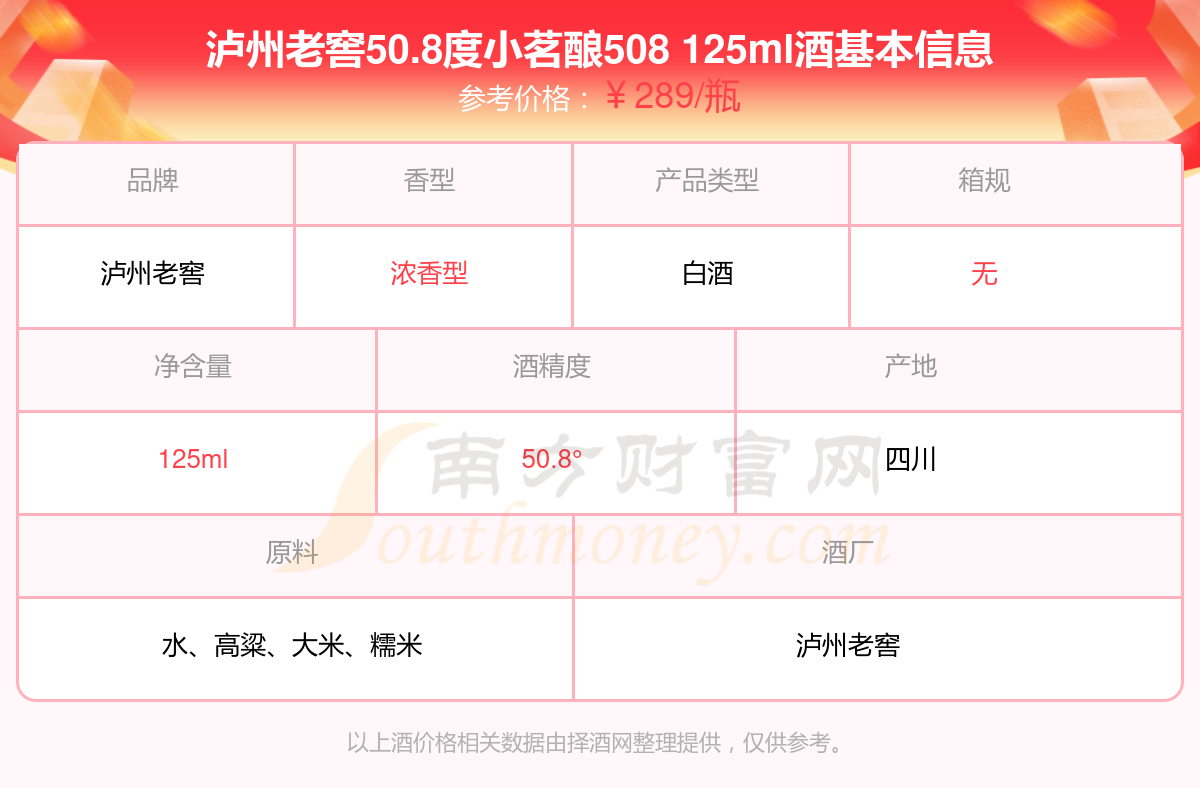 瀘州老窖50.8度小茗釀508 125ml基本信息
