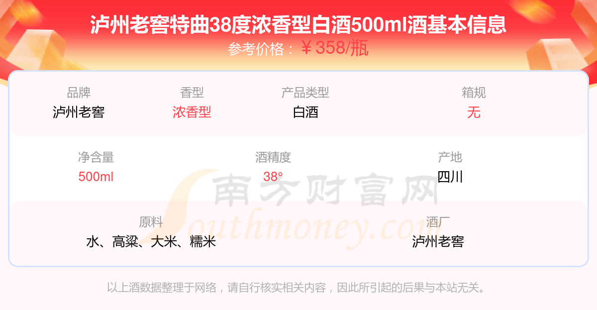 瀘州老窖特曲38度濃香型白酒500ml基本信息