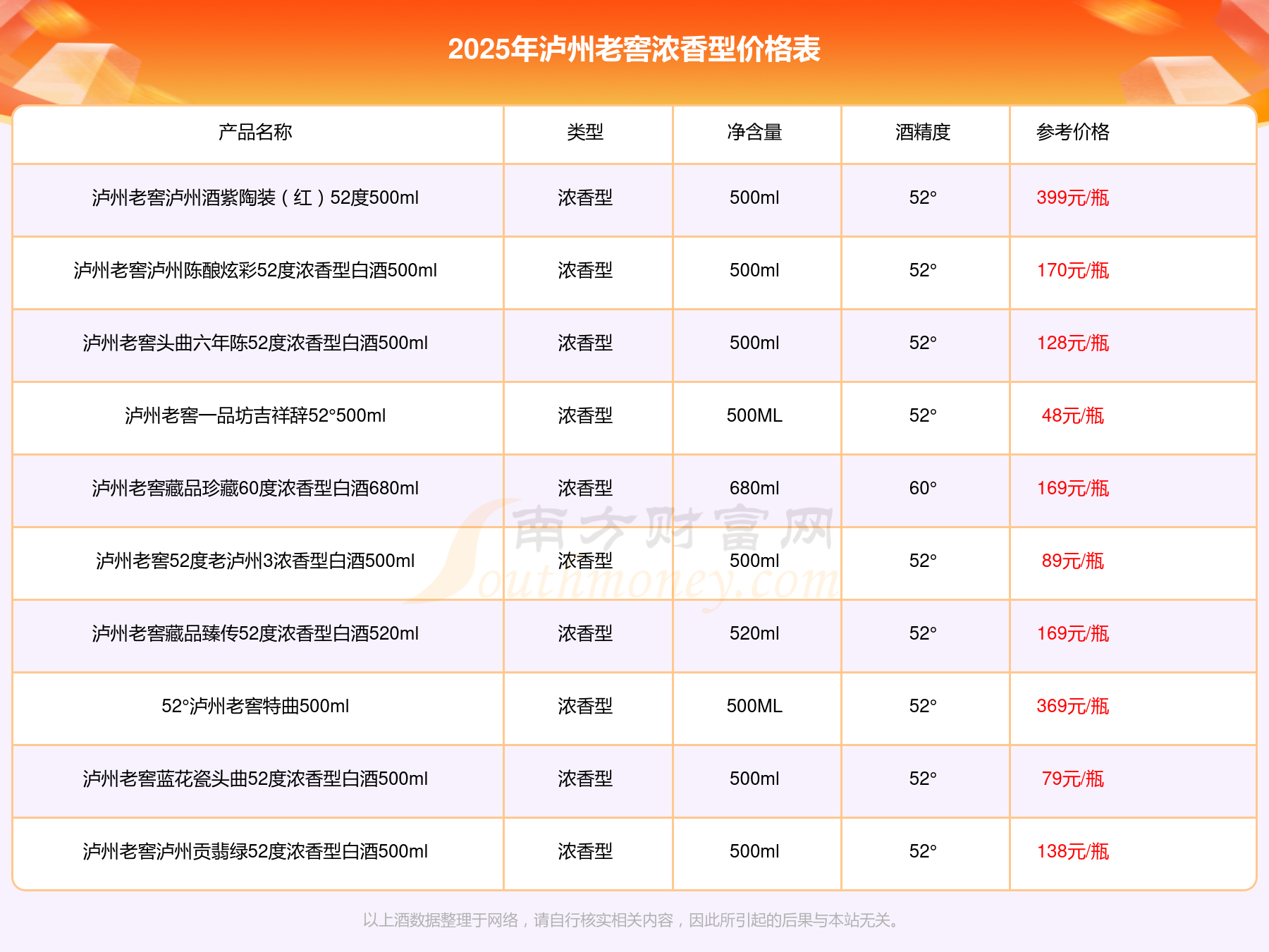 2025年,瀘州老窖國窖1573春釀鼠兆豐年E 55度、瀘州老窖國窖1573生命中的那壇酒55度014、瀘州老窖國窖1573春釀鼠兆豐年A 55度、瀘州老窖國窖1573生命中的那壇酒55度013濃香型白酒1000ml、瀘州老窖國窖1573生命中的那壇酒55度009 1000ml等瀘州老窖濃香型酒價格如下: