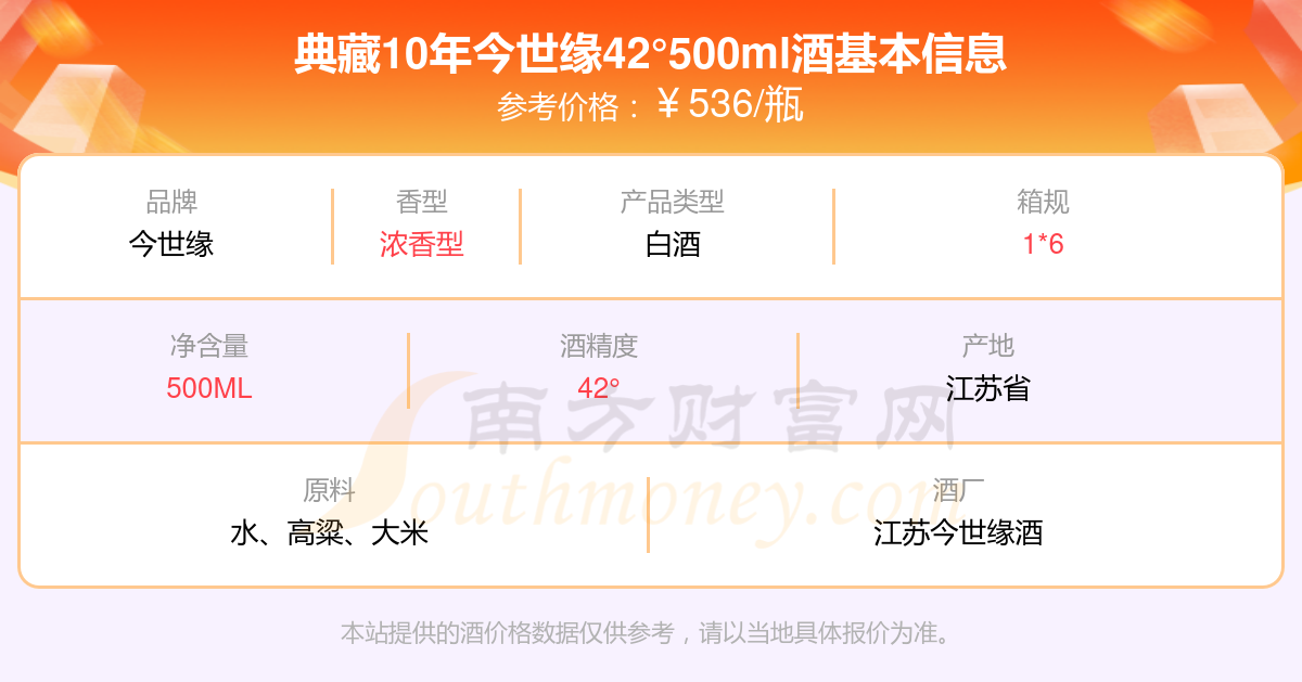 典藏10年今世緣42°500ml基本信息