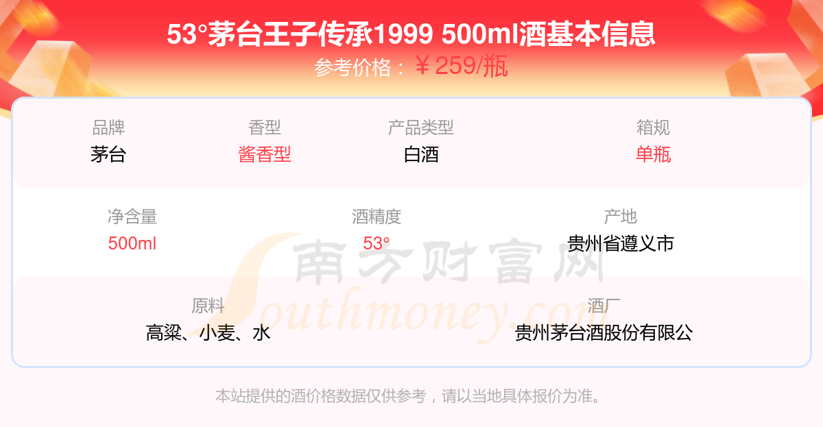 53°茅臺(tái)王子傳承1999 500ml基本信息