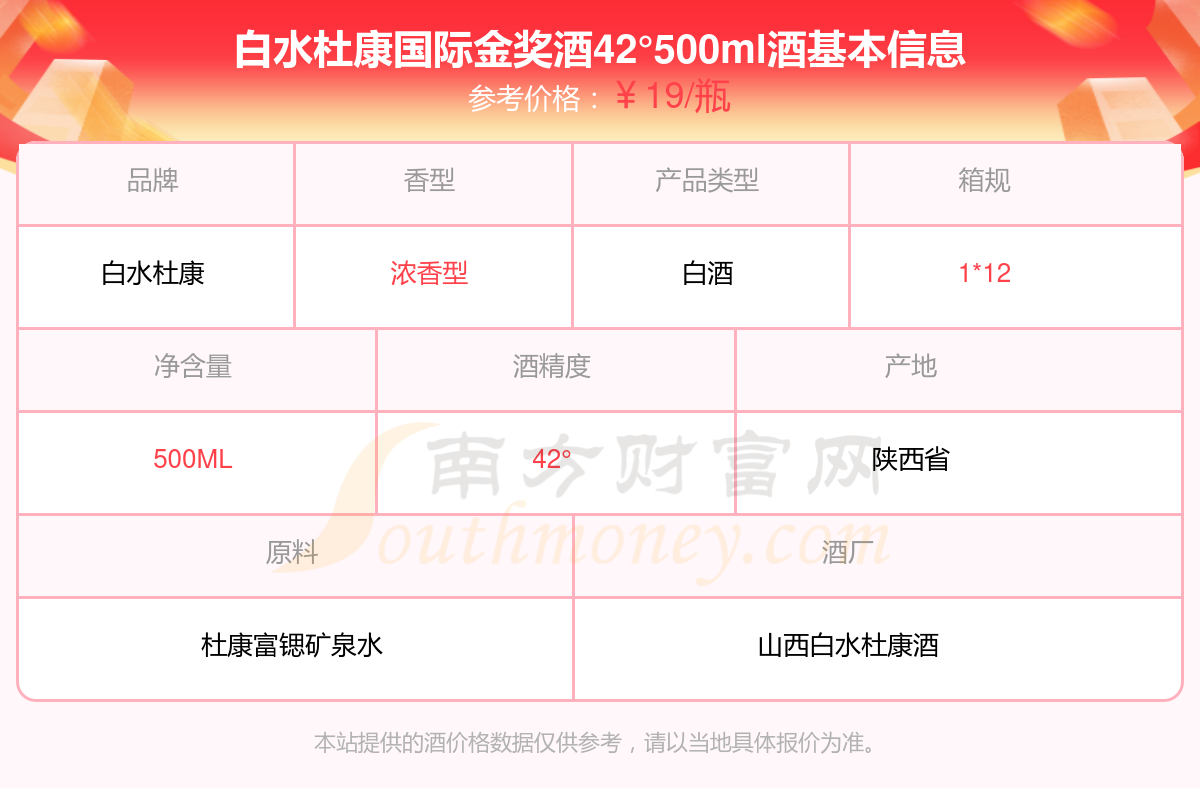 白水杜康國際金獎(jiǎng)酒42°500ml基本信息