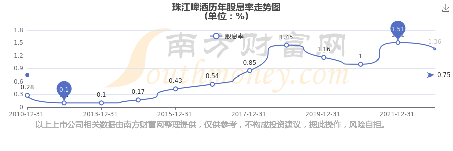 珠江啤酒最新一次公布的分紅方案:10派1.2元。