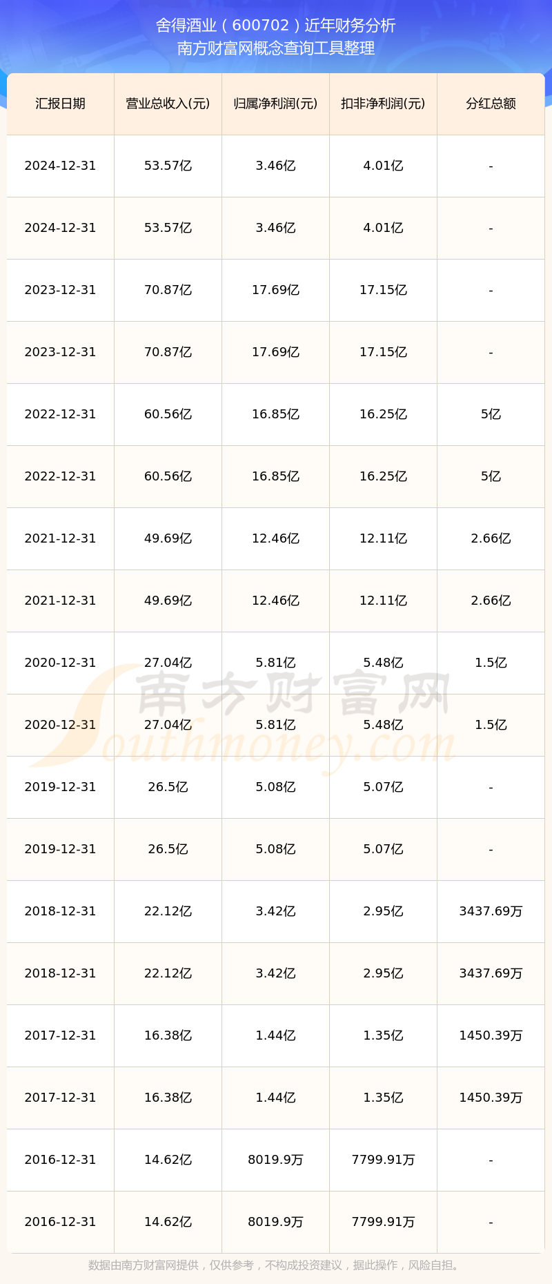 舍得酒業(yè)歷年分紅派息情況如下表所示: