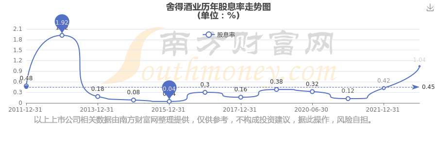 舍得酒業(yè)歷年股息率走勢如下圖: