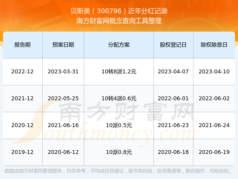 貝斯美最新一次公布的分紅方案:10轉(zhuǎn)8派1.2元。
