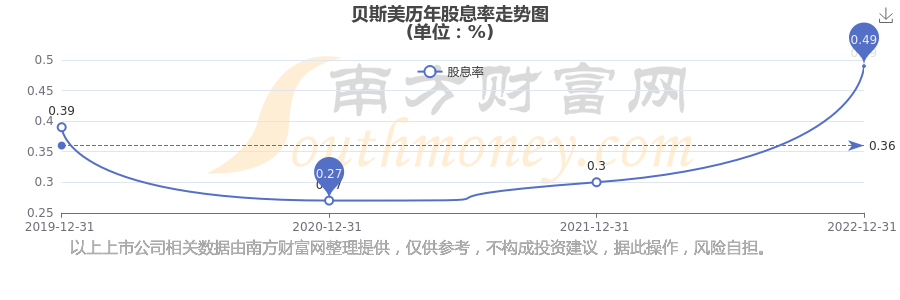 近年貝斯美年度股息率走勢(shì)如下圖: