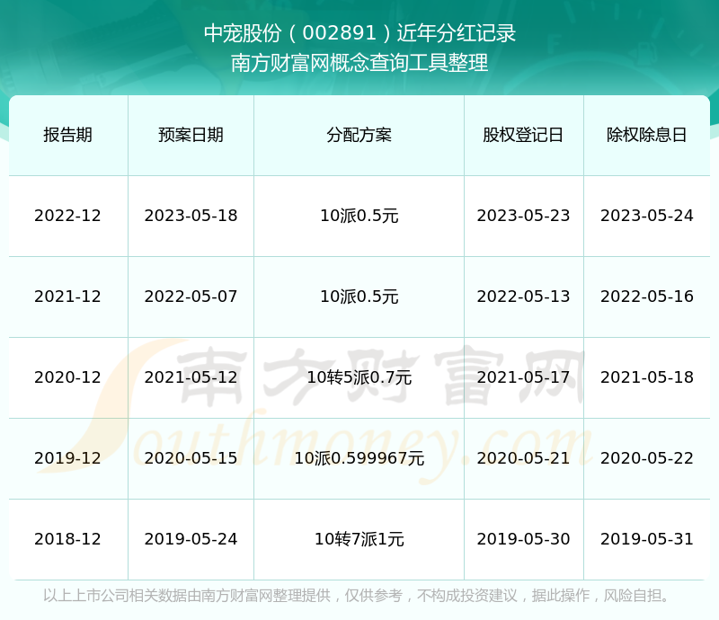 中寵股份最新一次公布的分紅方案:10派0.5元。