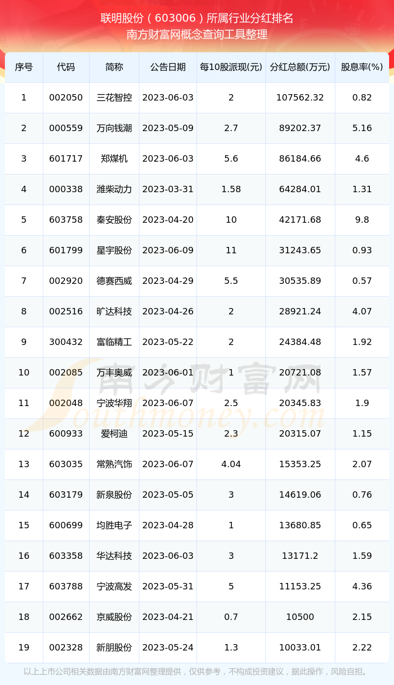 二、聯(lián)明股份603006行業(yè)分紅排名