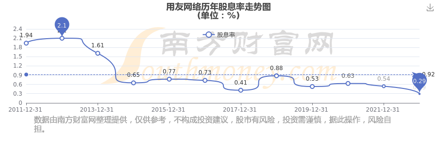 用友網(wǎng)絡(luò)歷年股息率走勢(shì)如下圖: