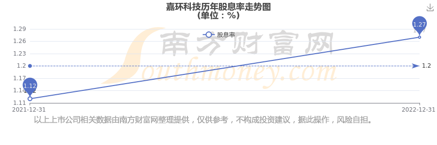 近年嘉環(huán)科技年度股息率走勢如下圖: