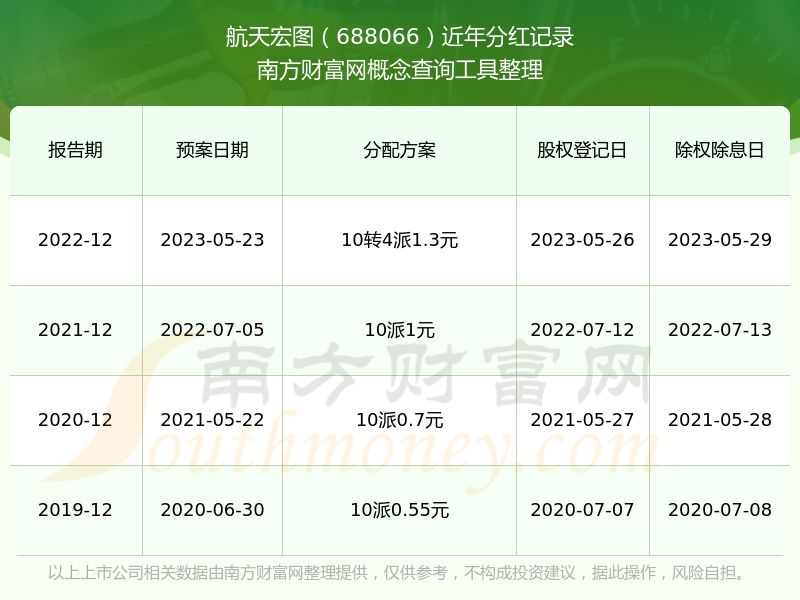 航天宏圖最新一次公布的分紅方案:10轉4派1.3元。