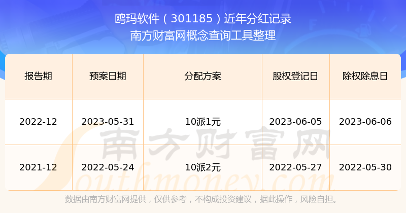 二、鷗瑪軟件301185行業(yè)分紅排名