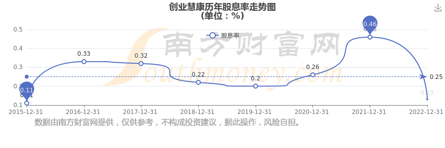 創(chuàng)業(yè)慧康歷年股息率走勢如下圖: