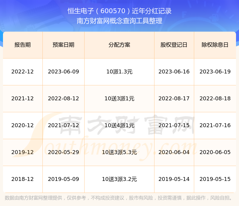恒生電子歷年分紅派息情況如下表所示: