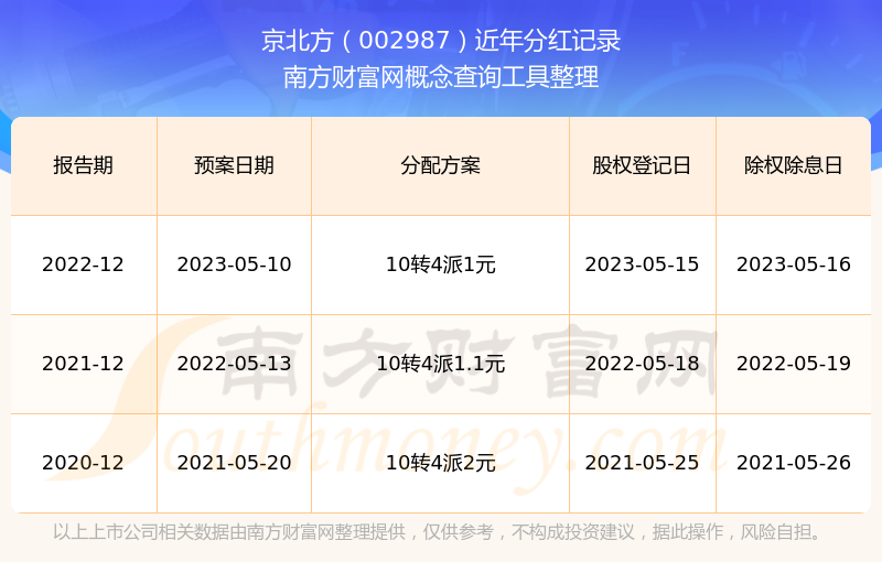一、京北方(002987)股票分紅記錄