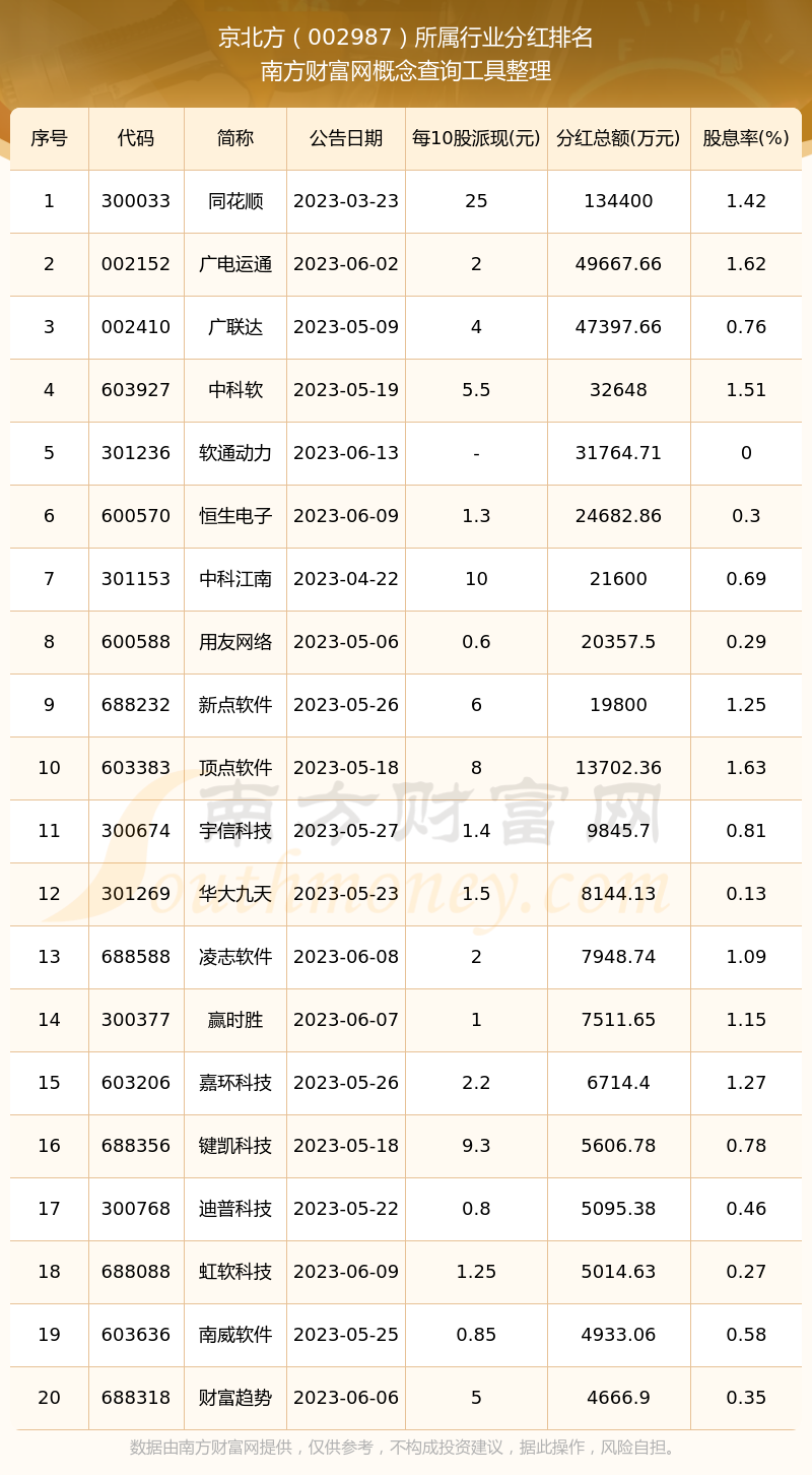 二、京北方002987行業(yè)分紅排名