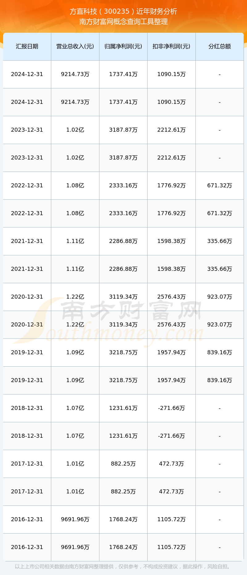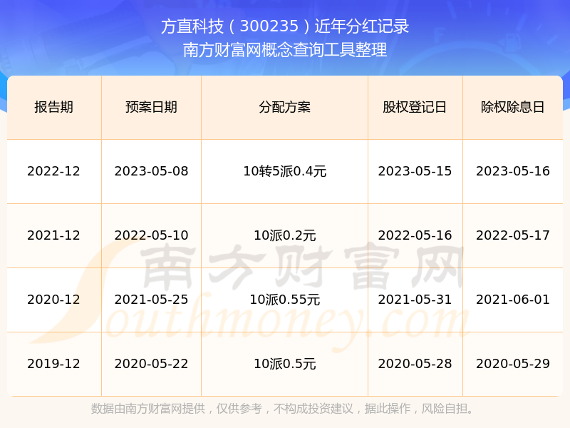 方直科技300235分紅時間: