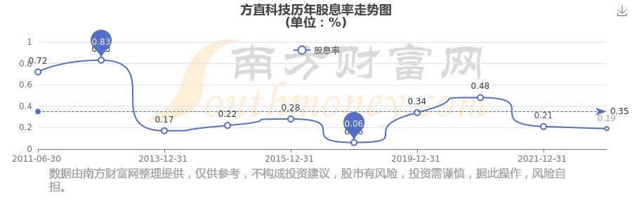 方直科技?xì)v年股息率走勢如下圖: