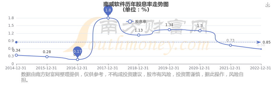 近年南威軟件年度股息率走勢如下圖: