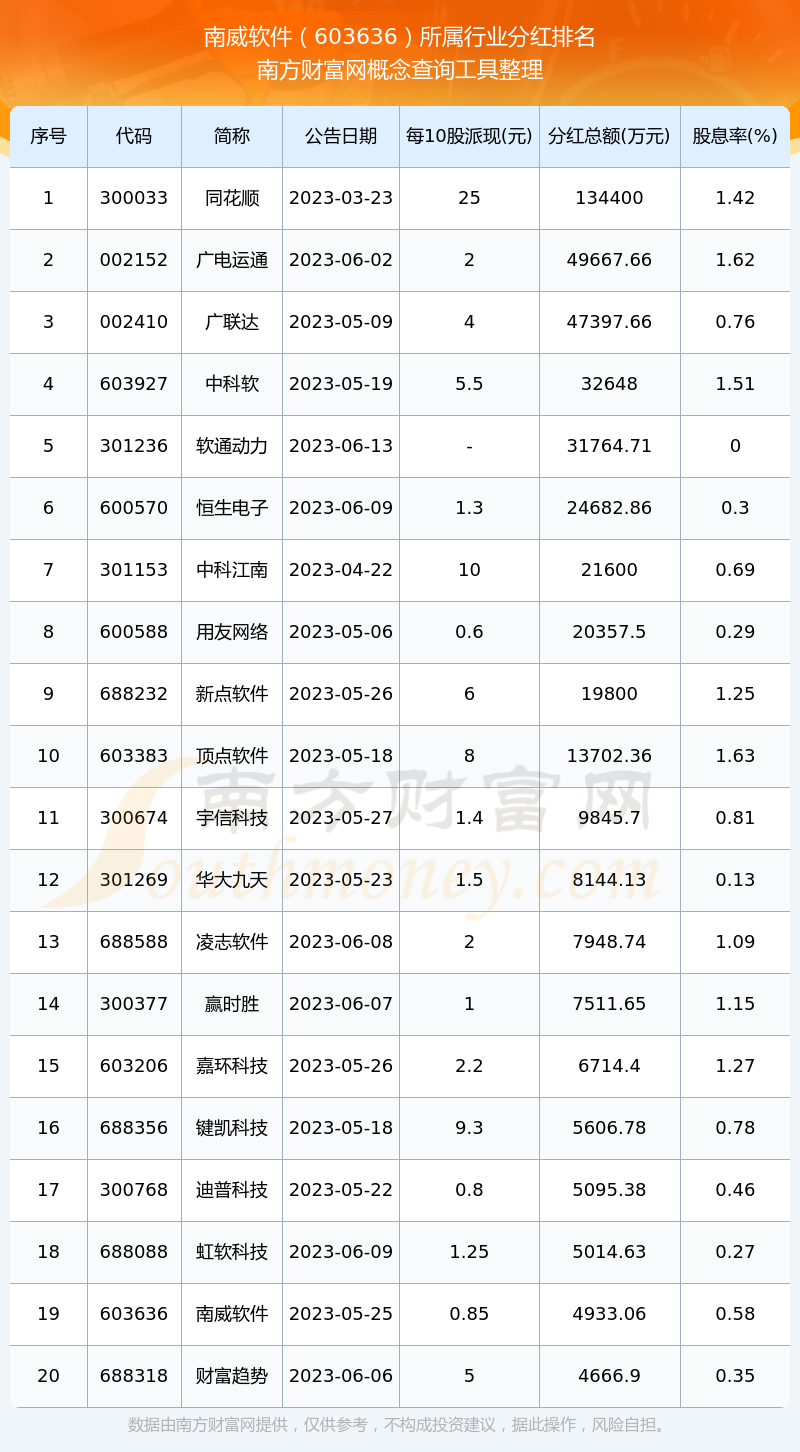 二、南威軟件603636行業(yè)分紅排名