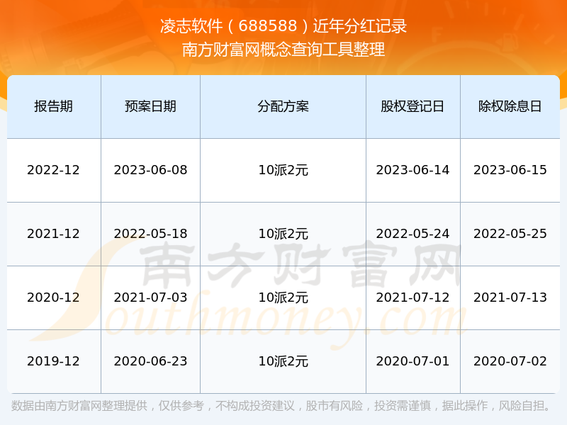 凌志軟件最新一次公布的分紅方案:10派2元。