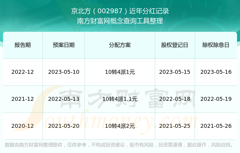 京北方最新一次公布的分紅方案:10轉(zhuǎn)4派1元。