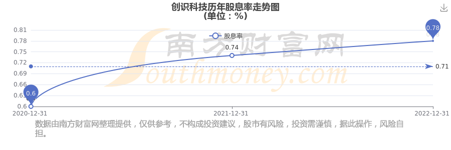 近年創(chuàng)識科技年度股息率走勢如下圖: