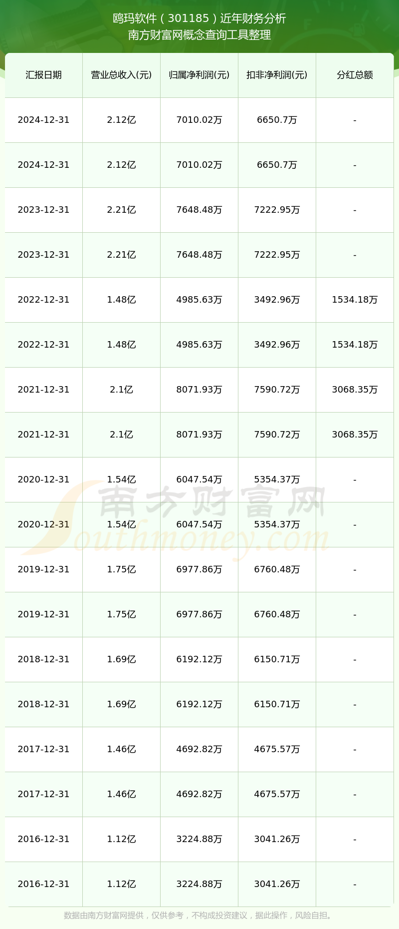 近年鷗瑪軟件分紅派息情況如下表所示:
