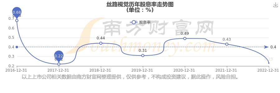 近年絲路視覺年度股息率走勢(shì)如下圖: