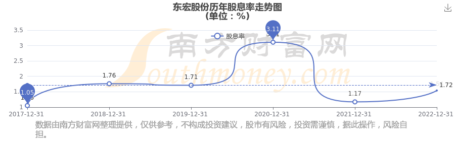 東宏股份最新一次公布的分紅方案為10派1.74元。本次權(quán)益分派股權(quán)登記日為2023年4月10日,除權(quán)除息日為2023年4月11日,派息日為2023年4月11日。