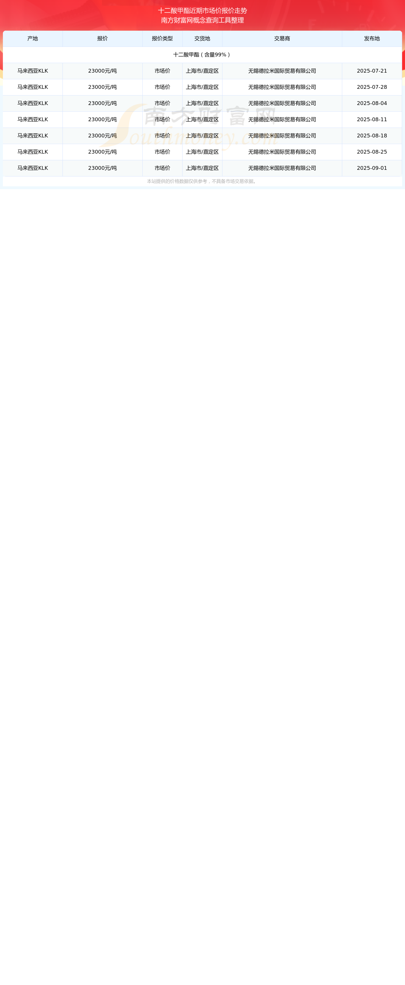 十二酸甲酯價(jià)格是?近期市場(chǎng)價(jià)行情走勢(shì)(2025/9/4)
