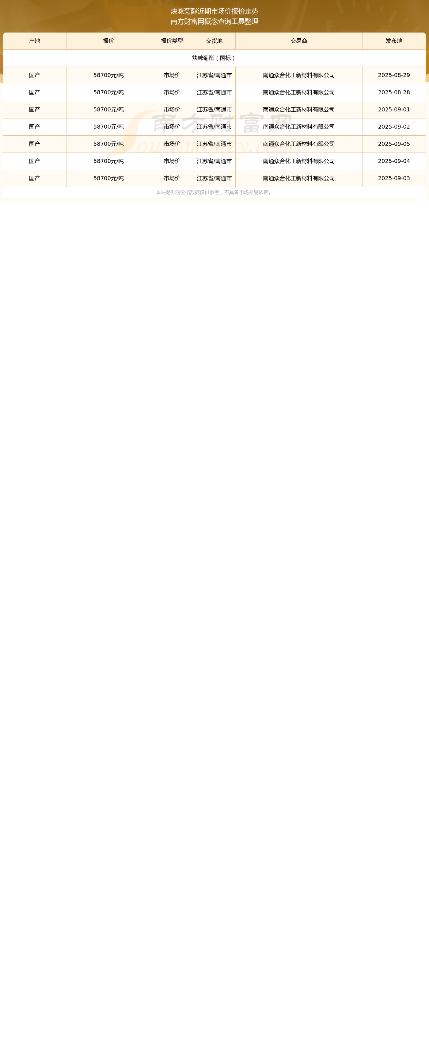 本站提供的價(jià)格數(shù)據(jù)僅供參考,不具備市場(chǎng)交易依據(jù)。