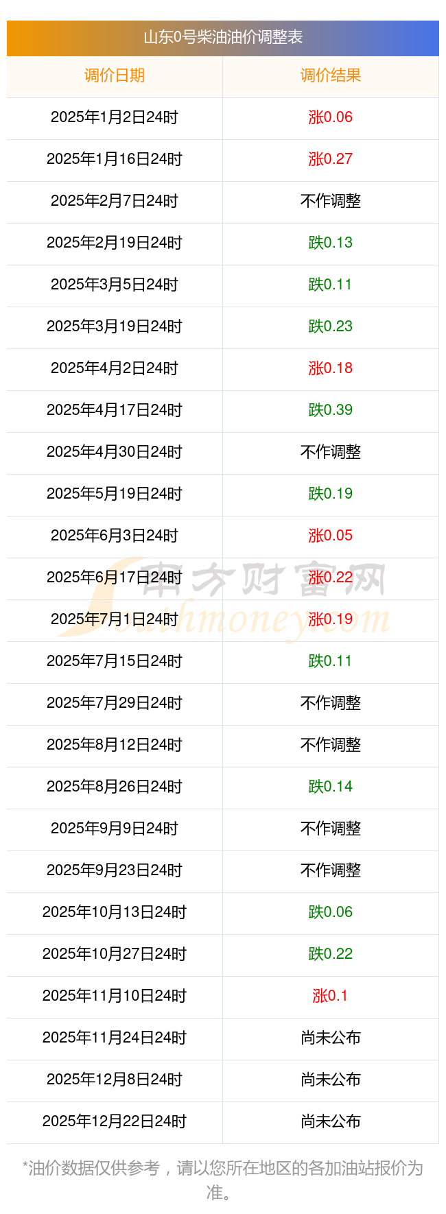2025年山東汽油價(jià)格調(diào)整一覽表